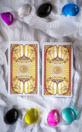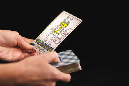 tarot cards, fortune telling rite with occult and esoteric symbols.