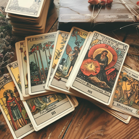 Mystical divination: tarot cards, a powerful tool for spiritual guidance and insight, a glimpse into the mysteries of the past, present, and future through symbolic imagery and ancient wisdom.