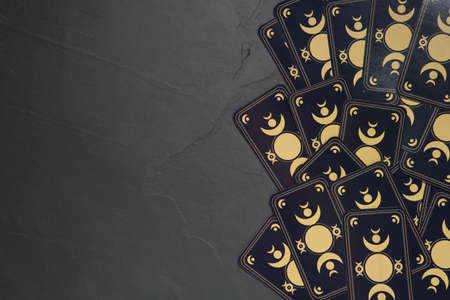 Tarot cards on the table. Magic occult background. Fortune telling.