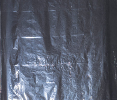 black plastic texture from a piece of old crumpled cellophane on the wall
