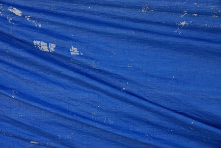 Blue canvas with holes. Leaky fabric. Forgotten. Abandoned. Ragged coating
