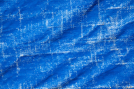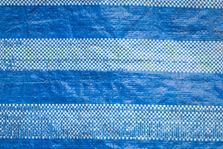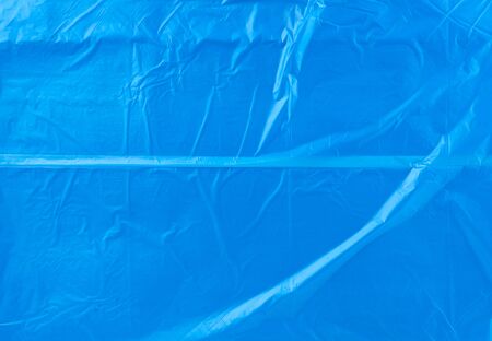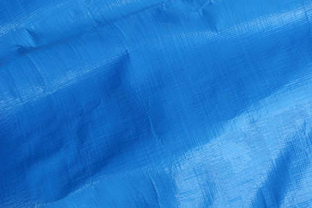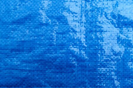 Tarpaulin, crumpled blue tarp. Background of strong, flexible, waterproof material. Canvas or polyester coated with polyurethane. Polyethylene, plastics.