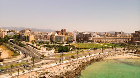 Aerial drone view of Palma city. Popular summer resort, Majorca, Balearic islands.