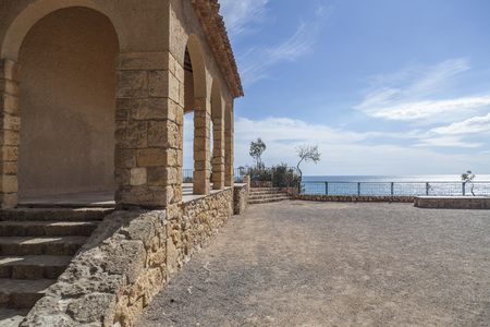 Ancient hermitage and mediterranean view lookout in Roda de Bera, Costa Dorada, Catalonia, Spain.