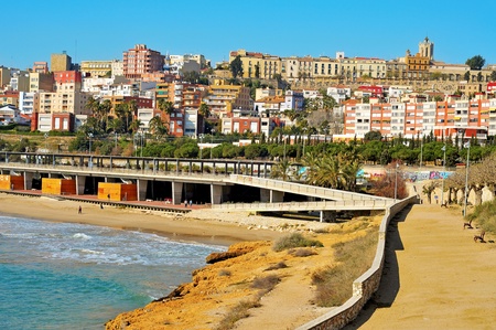 Panoramic view of the beach in Tarragona, Costa dorada Catalonia Spain