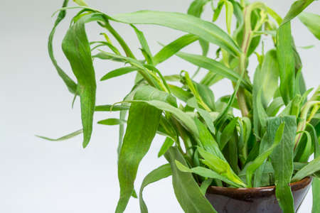 Tarragon twigs. Spicy-aromatic, tonic plant. Fresh shoots of green tarragon isolated on a white background.