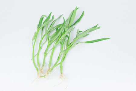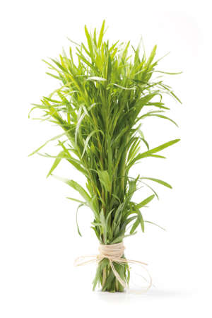 Fresh tarragon grass herb isolated on white background. macro photo.