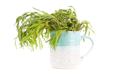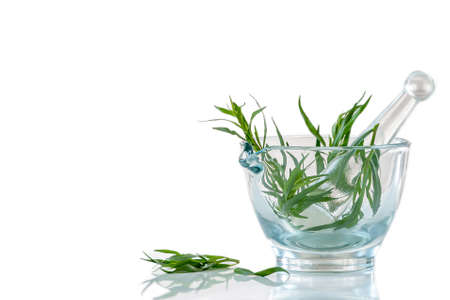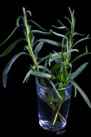 Tarragon in a glass with water white isolated