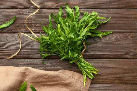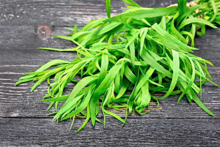Tarragon herb as a organic salad ingredient on dark wooden table