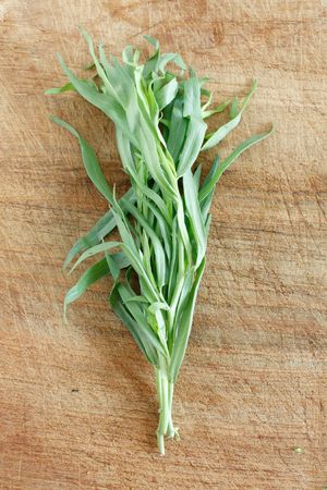 Bunch of fresh tarragon on a wooden board