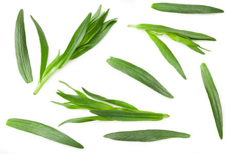 tarragon or estragon isolated on a white background. Artemisia dracunculus. Top view. Flat lay