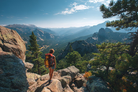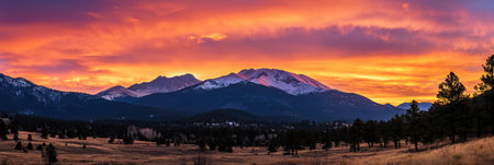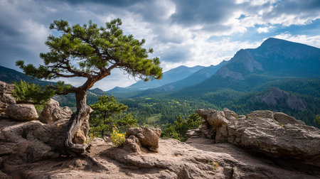 Stunning panorama of Rocky Mountain National Park with its majestic peaks, lush valleys, and vibrant forests under a picturesque cloudy sky
