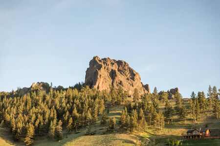 Rock formation near forest and beautiful home in Cascade, Montana.