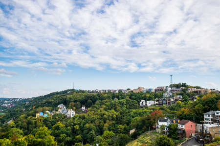 Dramatic Skyline of Downtown above the Monongahela River in Pittsburgh, Pennsylvania
