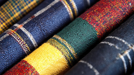 A close-up image displaying colorful textiles with distinct patterns and rich textures, perfect for fashion or design inspiration and projects.