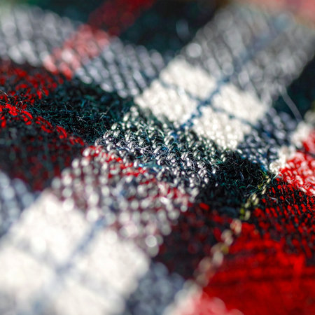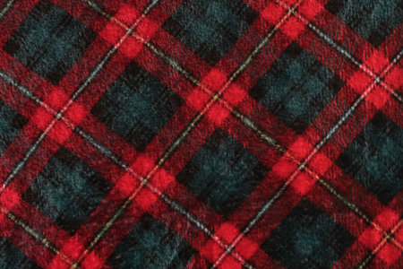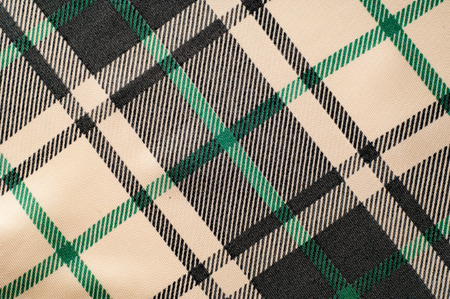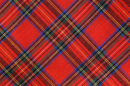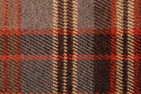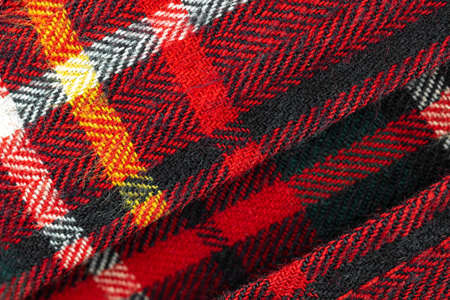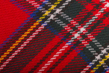 Close up of traditional Scottish woolen tartan fabric. Checkered cashmere plaid.