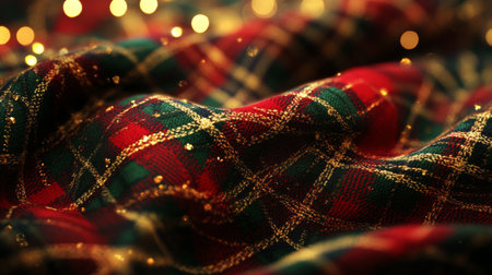 A close-up view of vibrant red plaid fabric, showcasing soft textures and warm lighting that creates a cozy and inviting atmosphere perfect for design projects.