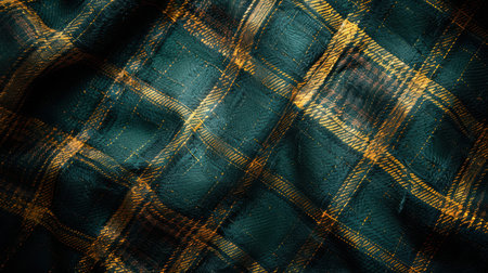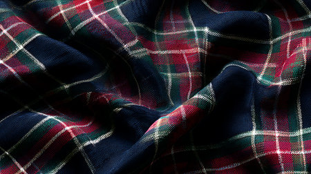 Texture of wrinkled, crumpled tartan fabric close-up, traditional Scottish clothing AI generated image