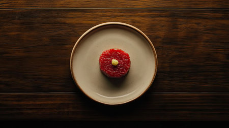 A stunning presentation of a gourmet raw dish featuring fresh seafood and a hint of wasabi, beautifully arranged on a simple plate. Perfect for food enthusiasts.