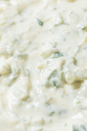 Very close view of fresh tartar sauce.