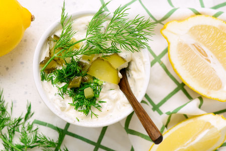 Savory Healthy White Tartar Sauce with Lemon for Fish