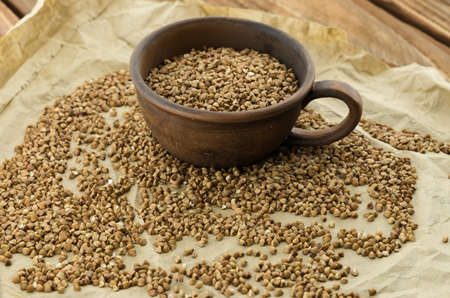 The ripe buckwheat seeds on the wrapping-paper
