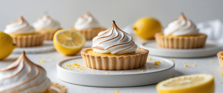 AI Generated. Delicious Lemon Tarts Topped With Swirled Meringue