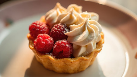AI Generated. Delicious Raspberry and Cream Mini Pies with Berries