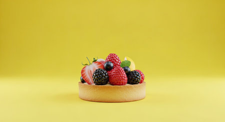 Appetizing Mini Fruit Tart Lemon Yellow Background Colorful Dessert Baking