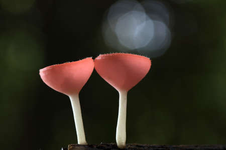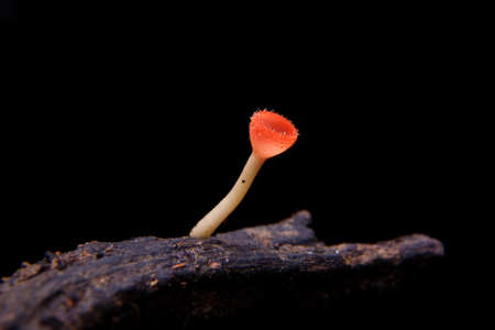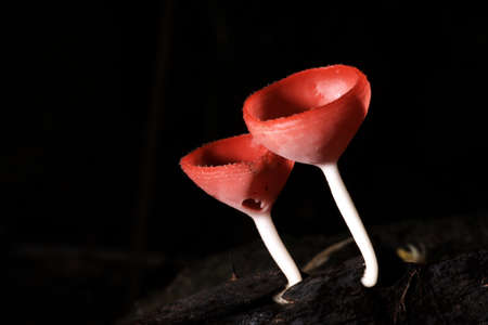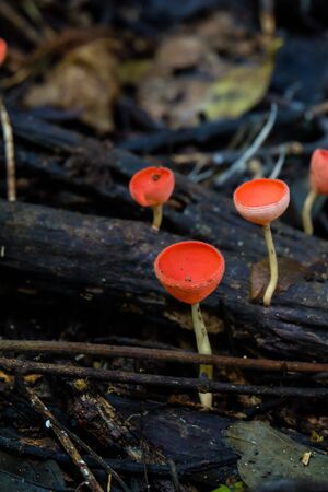 Fungi cup red Mushroom Champagne Cup, Can found in the rainy season forest of Thailand, selective focused