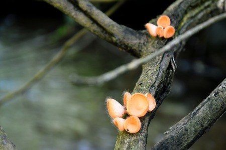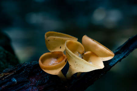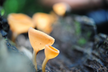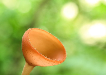 Orange cup mushroom in the rain forest,Thailand,selective focus