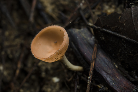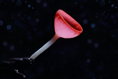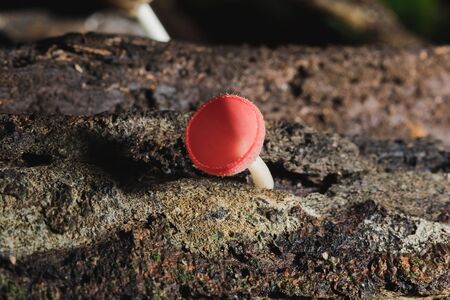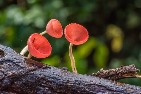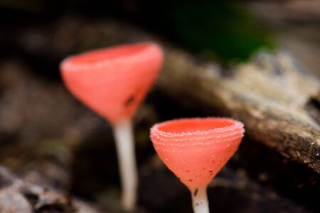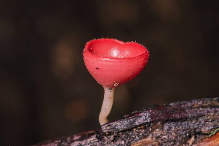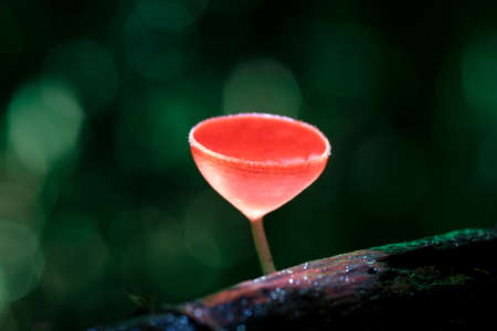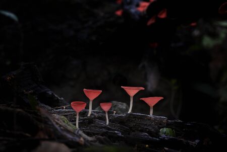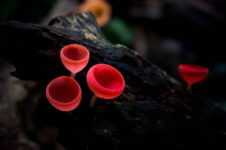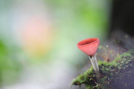 Fungi cup red Mushroom Champagne Cup, Can found in the rainy season forest of Thailand, selective focused