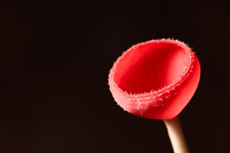 Red cup fungus (Cookeina speciosa) near Puerto Viejo de Sarapiqui, Costa Rica.
