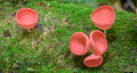 Pink Burn Cup, Fungi Cup mushroom in forest