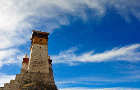 Giant Kumbum Stupa, Gyantse Fortress, Gyantse Dzong - the Solemn Persistence of Ancient Tibet. Gyantse County, Shigatse Prefecture, Tibet Autonymous Region of China. Ancient architecture