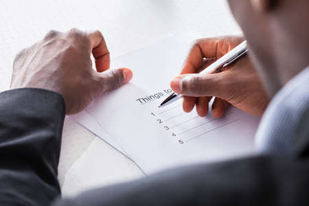 Close-up Of Businessman Hand Planning To Do List