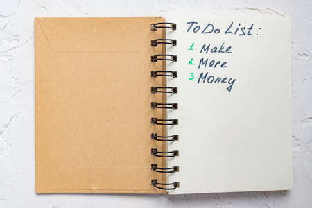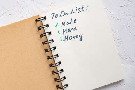 To do list - make more money written text on note pad. Close up.