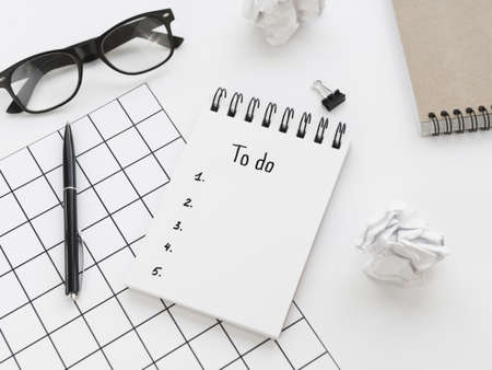 To do list in the planning notepad with the checklist and copy space on light background. Office management and education reminder concept.