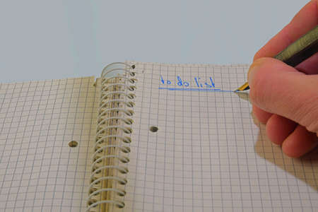 task list or to do list , hand written on notebook
