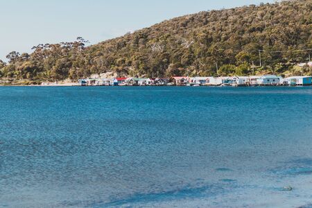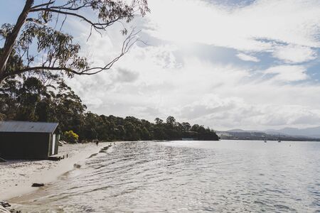 HOBART, AUSTRALIA - August 31st, 2019: beach landscape in Blackmans Bay in Hobart, Tasmania in Australia
