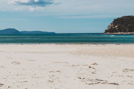 sunny pristine and deserted beach overlooking the South Pacific Ocean in Marion Bay along the East Coast of Tasmania Australia
