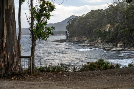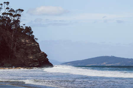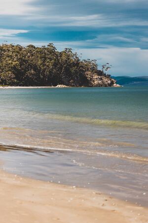 View of Bruny Island beach in Tasmania, Australia in the afternoon.