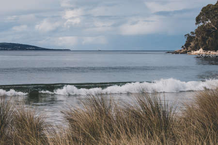 sunny coastal landscape in Kingston Beach in South Hobart, in Tasmania, Australia