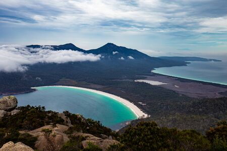 Beautiful view of Wineglass Bay beach located in Freycinet National Park, Tasmania.