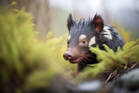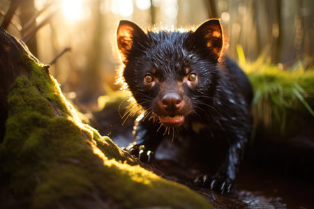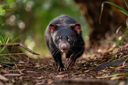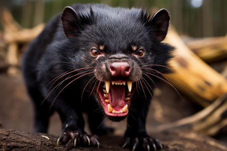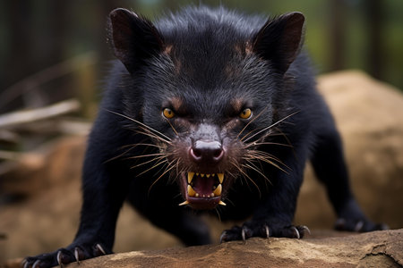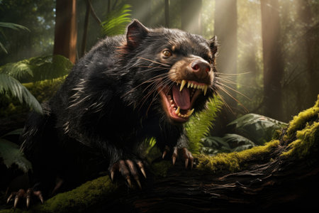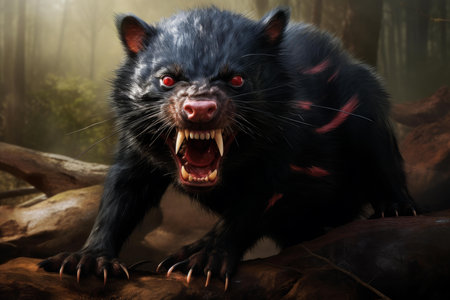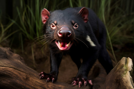 A breathtaking shot of a Tasmanian Devil his natural habitat, showing his majestic beauty and strength.