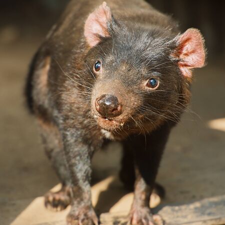 Closeup portrait of the Tasmanian devil Sarcophilus harrisii looking at the camera