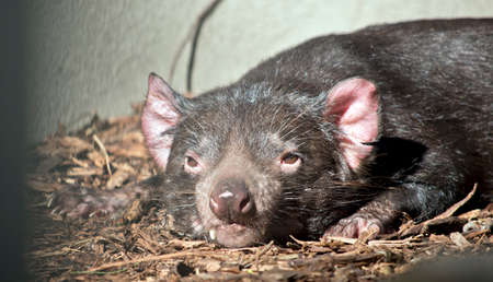 Tasmanian devil face. Endangered animal found in the wild only on the Australian island state of Tasmania.