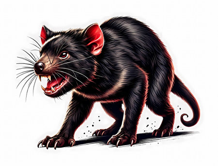 Illustration of a fierce Tasmanian devil showing its sharp teeth in a dynamic pose.