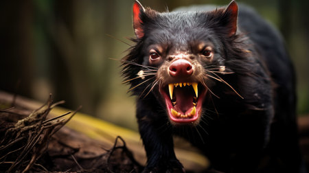 Intimidating Tasmanian devil animal jungle portrait. Morning nature wild shot funny. Generate Ai