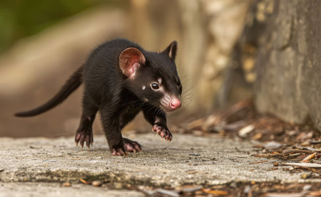 A playful Tasmanian Devil pup in a moment of youthful exuberance